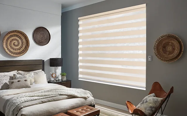 Layered shades (also known as zebra shades) offer a modern take on light control with their alternating bands of sheer and opaque fabrics.